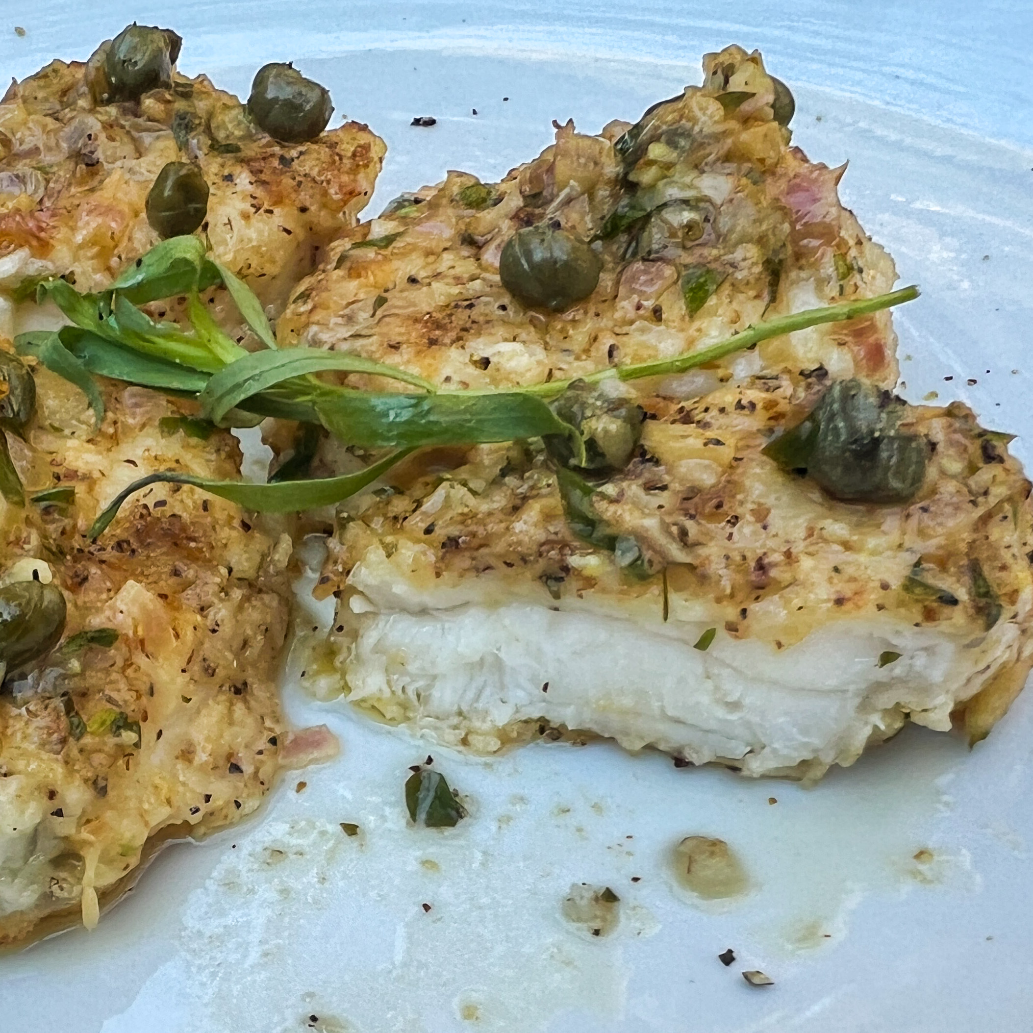 - Melt the butter in a small skillet. Add the shallots and garlic and cook on medium until both the butter and shallots have lightly browned and acquired a nutty aroma. Stir in capers, tarragon, lemon juice, and chicken broth until just warmed and remove from stove. Set aside.