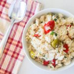 In a bowl, add cod, pour oil and garlic over, add lemon juice, peppers, olives, capers, parsley and salt and pepper to taste. Place on serving platter and serve at room temperature.