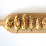 Once they are out of the oven, top the jalapenos with the crispy topping while the cheese is still soft.