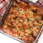 Preheat the oven to 375 degrees F and butter a shallow 3-quart baking dish. Melt 6 tablespoons butter in a large nonstick skillet over medium heat. Add the scallion whites, bell pepper, thyme and celery; cook, stirring occasionally, until the vegetables are softened, about 6 minutes. Add the broth, 1 and teaspoon salt, bring to a simmer, then remove from the heat.