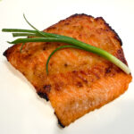 Place the fish skin side up under the broiler, about 6 inches from the heat. Broil for 2 to 3 minutes on each side, until the surface browns and blackens in spots. Slightly longer per side if it is a particularly thick piece of fish. If you have any sauce left, spoon it over the hot fish.