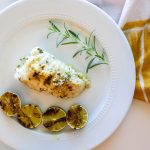 Place Cusk in a shallow baking dish and season with salt and pepper. Whisk together garlic, rosemary, oil and lime juice in a small bowl. Pour 3/4 mixture over Cusk, toss and marinate 15 to 30 minutes.