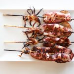 Pour the mixture into a large zip-seal bag. Add squid (pre skewered), and toss to coat evenly with marinade. Seal the bag closed and transfer to the refrigerator to marinate for 30 minutes.