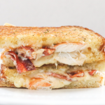 Place one slice on the pan, butter side down. Add 2 slices of gruyere, 4 ounces of lobster meat and then 2 slices of gouda to top side of bread. Put the other slice of bread on top, butter side up. Cook until the bottom piece of bread is golden brown and cheese is beginning to melt. Flip. Cook until cheese is melted and stringy, and bread is golden brown.